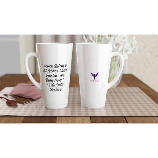 “Women Belong in All Places Where Decisions Are Being Made.” – Ruth Bader Ginsburg | White Latte 17oz Ceramic Mug