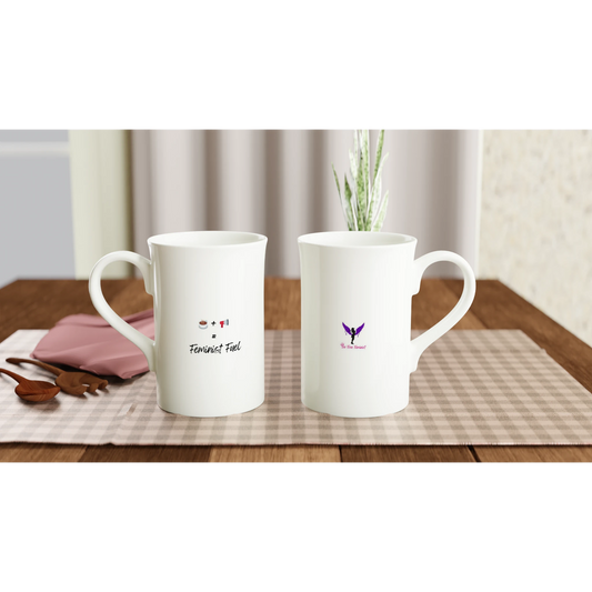 ☕ + 📢 = Feminist Fuel | White 10oz Porcelain Slim Mug